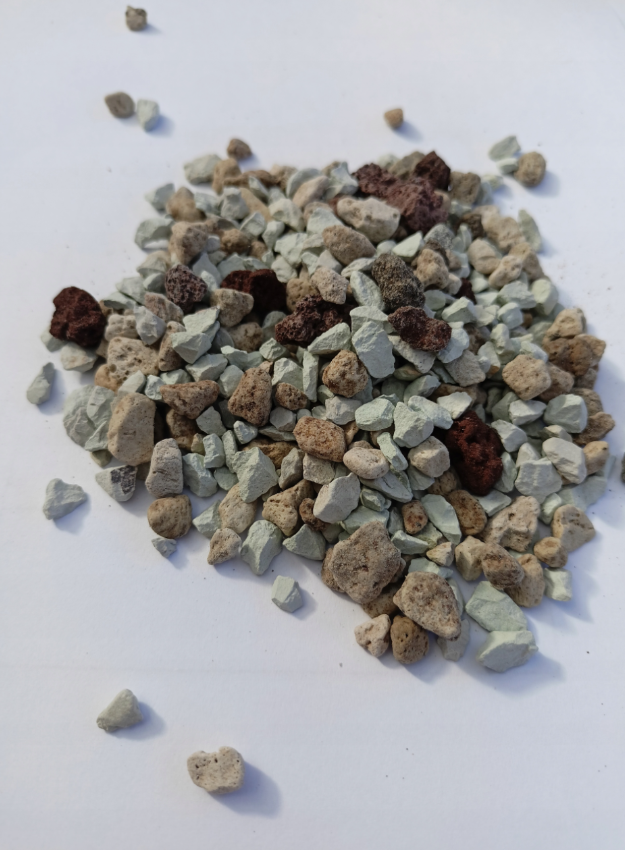 - naturalny skład: zeolit, pumeks i czerwona lawa